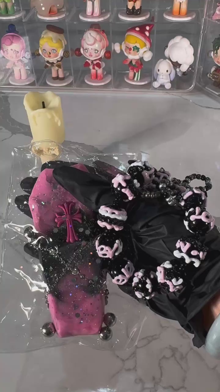 Brings a spooky glow to your Halloween collection. Shaped like a creepy coffin and glowing eerily in the dark, this squishy toy adds an extra layer of frightful fun. Perfect for both kids and adults, it’s soft, squeezable, and the perfect companion for all your Halloween thrills. Included handmade hanger.